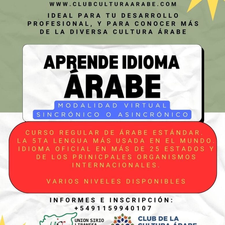 APRENDE IDIOMA ÁRABE ON LINE – DESDE CUALQUIER PARTE DEL MUNDO Este ciclo inicial de clases de árabe es una excelente oportunidad para dar los primeros pasos en el idioma y acercarse a la cultura árabe. Es ideal para personas que tienen interés en la Cultura o el Mundo Árabe en general, también para quienes […]